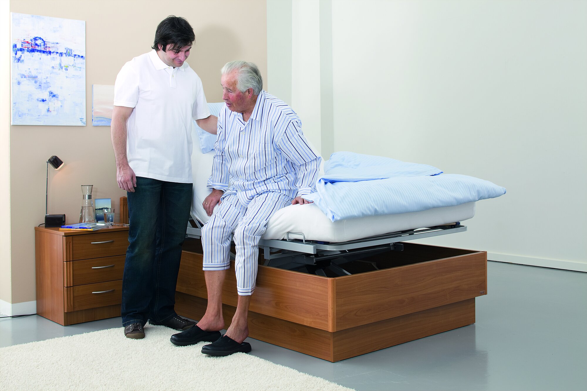 Das belluno bibs Bettsystem bietet hohen Komfort für Patienten und Senioren – mit einer vierfach verstellbaren und höhenverfahrbaren Liegefläche, die sich platzsparend und unauffällig in bestehende Betten integrieren lässt.