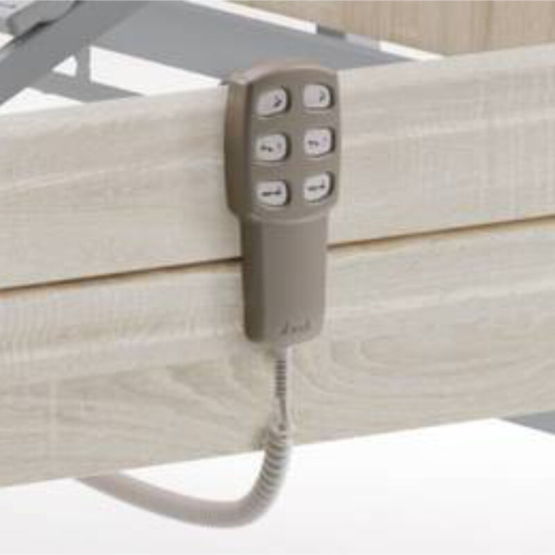 Die Steuerung erfolgt über einen kabelgebundenen Handschalter mit Sperrfunktion und soften Tasten, die eine angenehme Haptik und sichere Kontaktbestätigung gewährleisten.