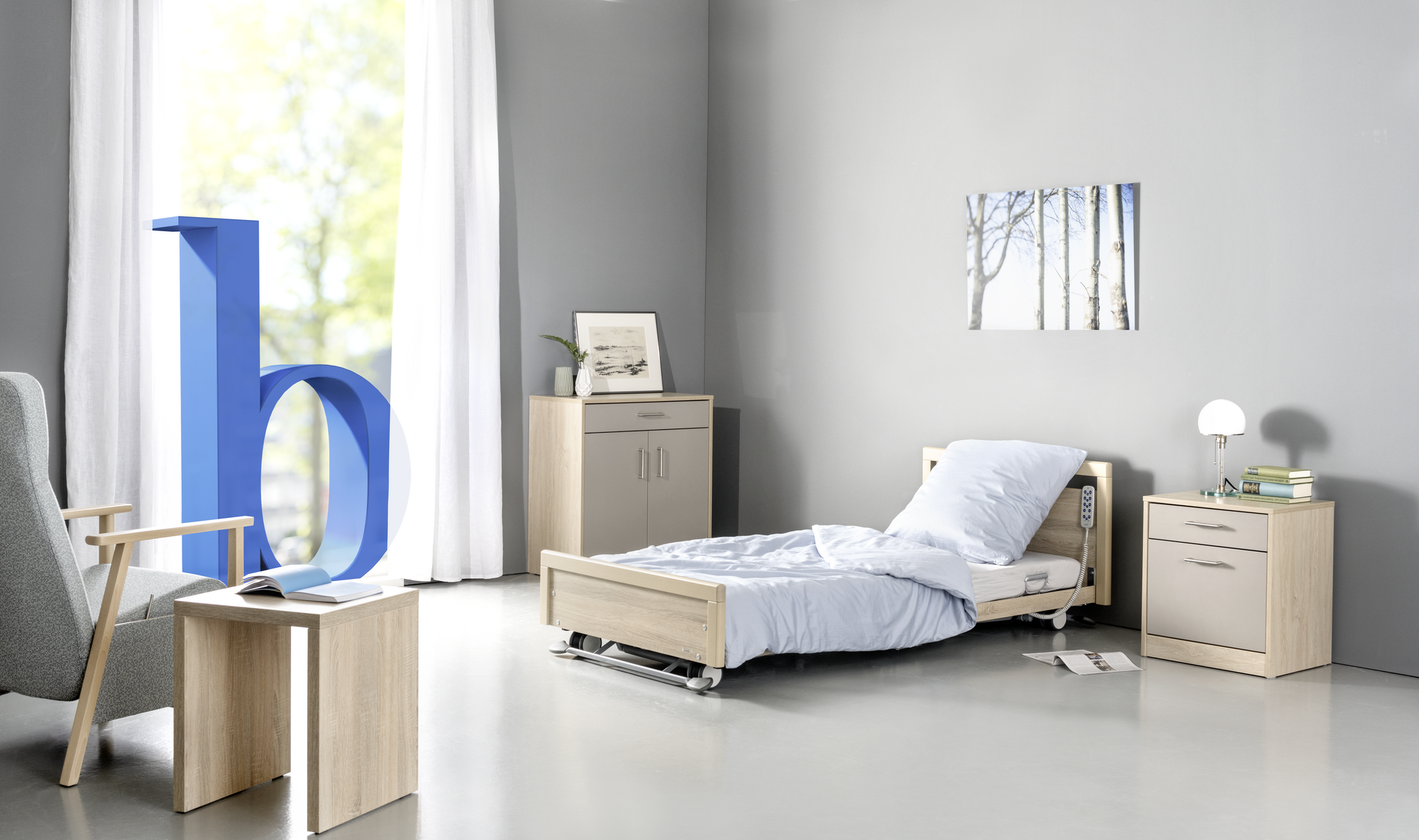 - Handschalter mit Sperrfunktion – Einfache Bedienung und erhöhte Sicherheit für Bewohner und Pflegepersonal
